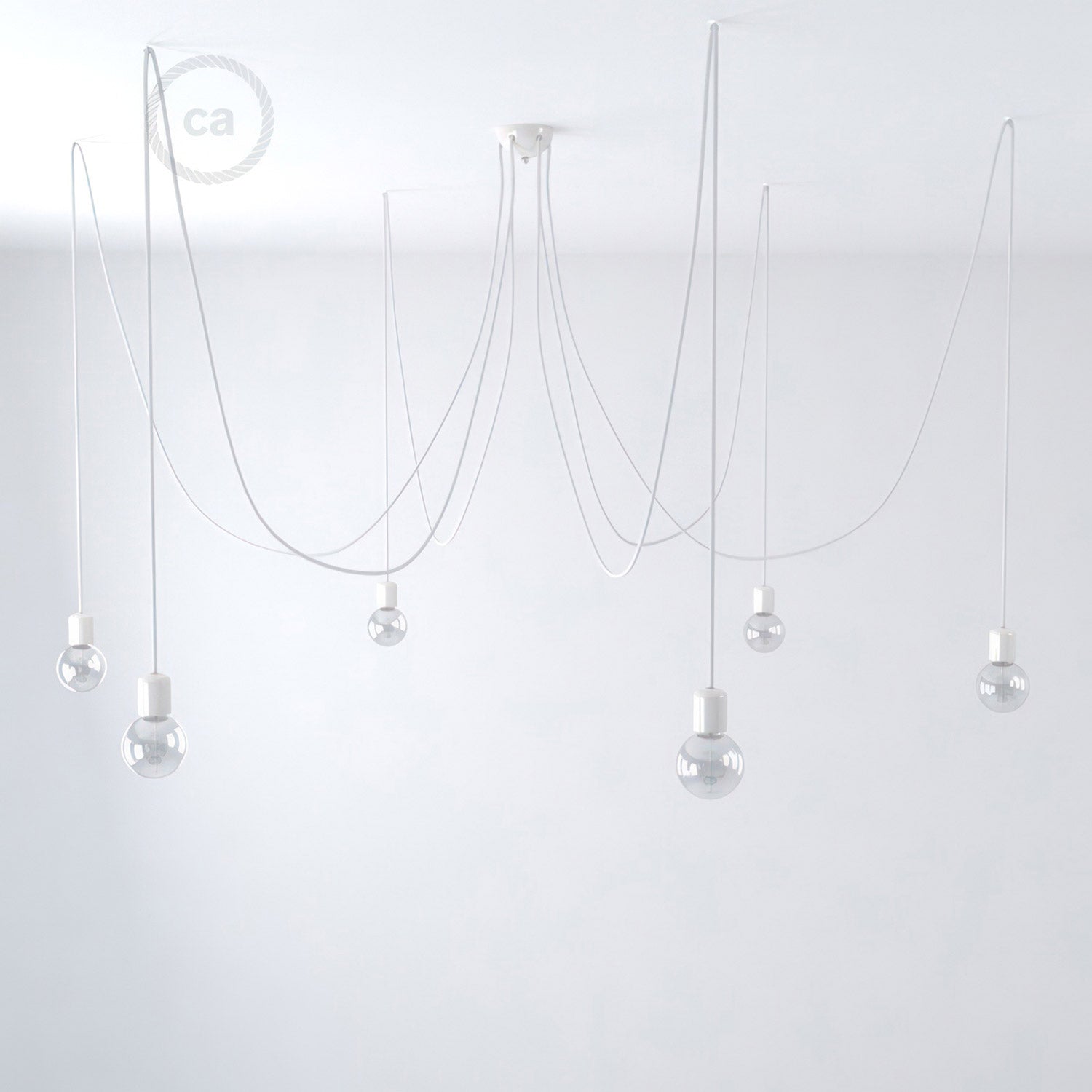 Multiple pendant lamp with 6 falls Made in Italy complete with fabric cable and coloured ceramic finishes