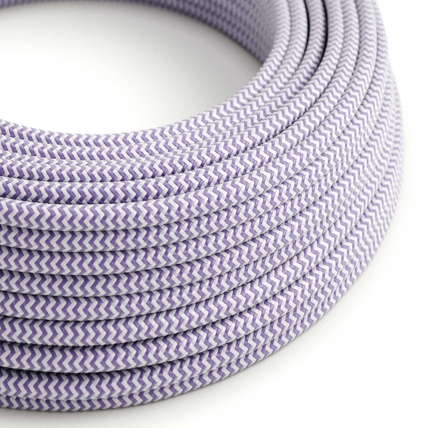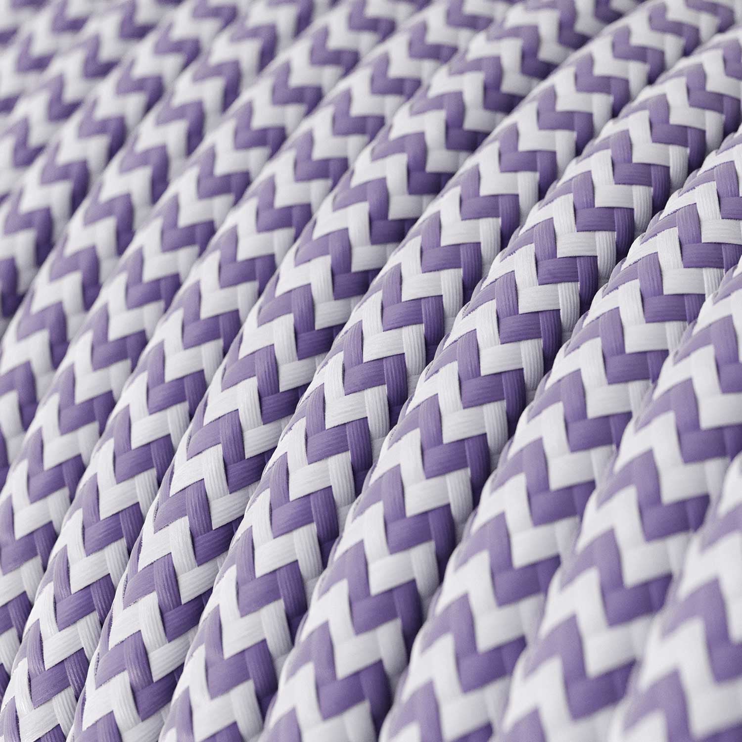 Glossy Lavender and Optical White Textile Cable ZigZag - The Original Creative-Cables - RZ07 round 2x0.75mm / 3x0.75mm