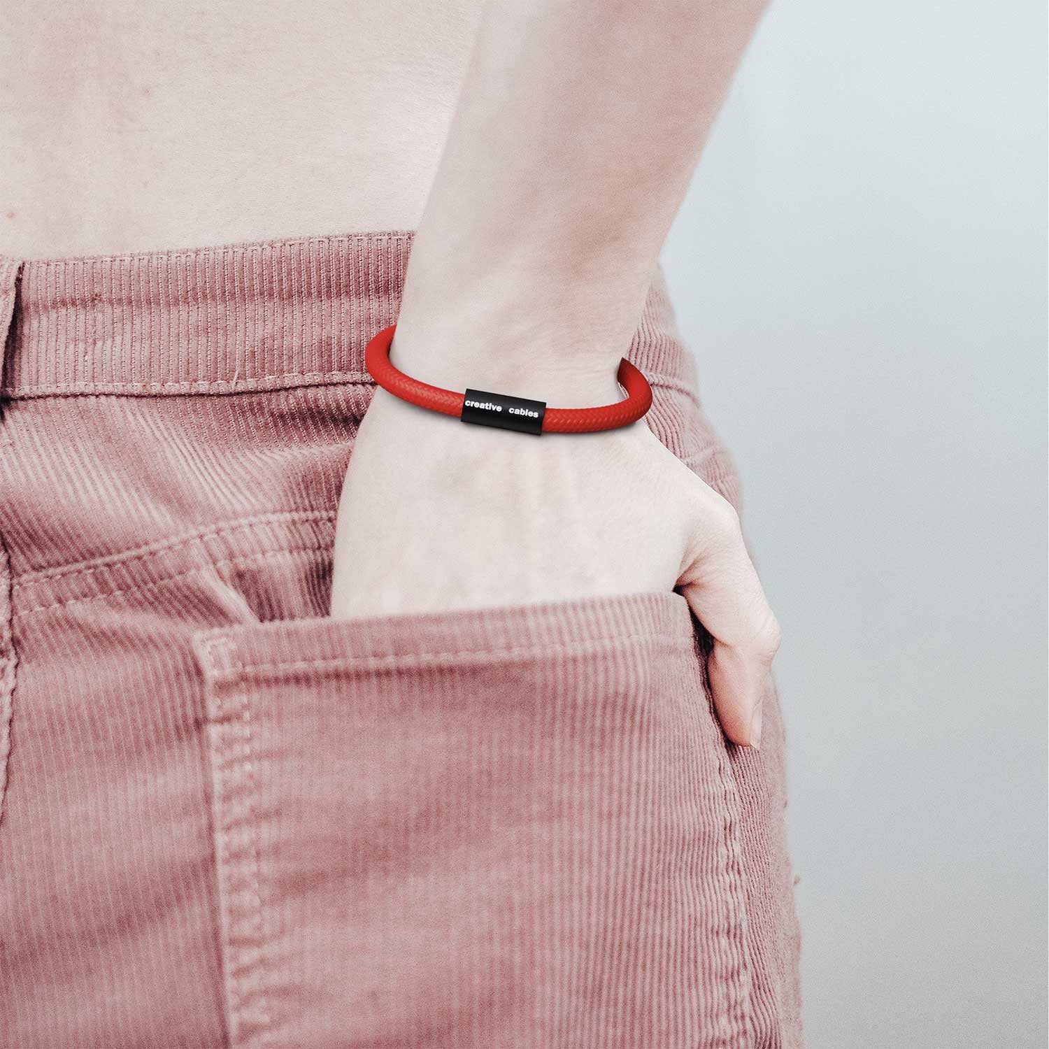 Ready-to-wear bracelet made with RM09 textile cable and a matt black magnetic clasp.