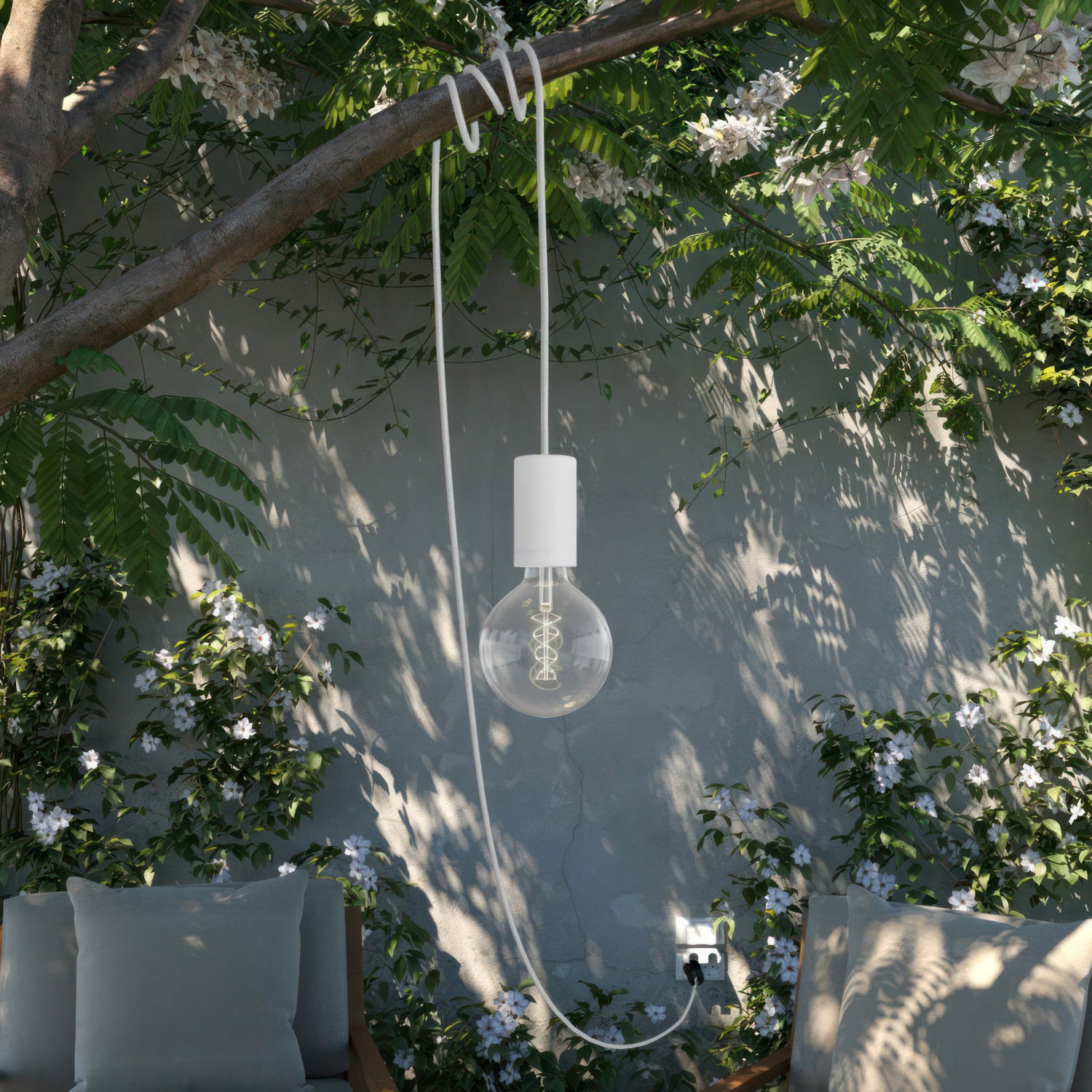 Modulair Snake Elegant, portable outdoor lamp, 5 m textile cable, IP65 waterproof lamp holder and plug