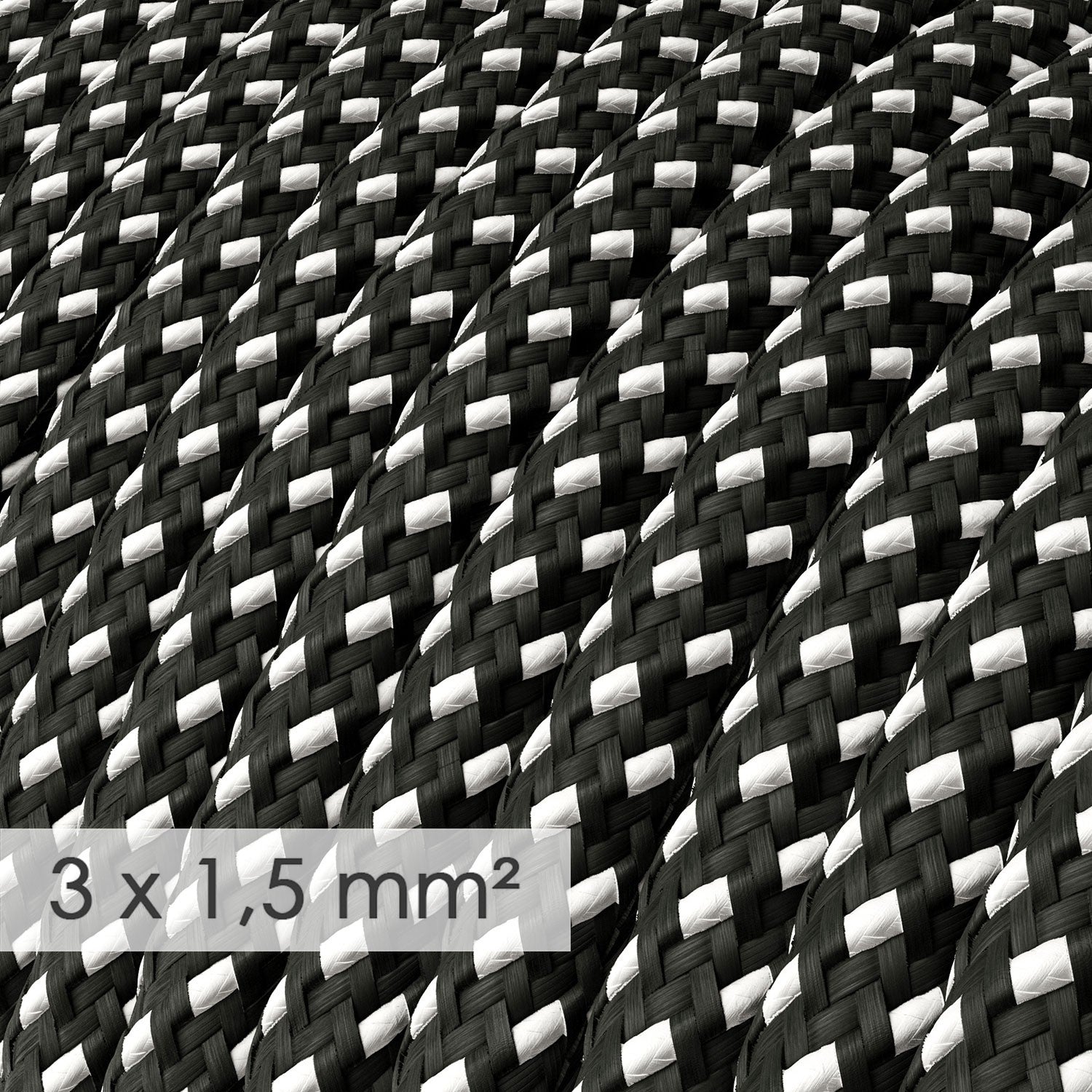 Large section electric cable 3x1,50 round - covered by rayon 3D Black White RT41