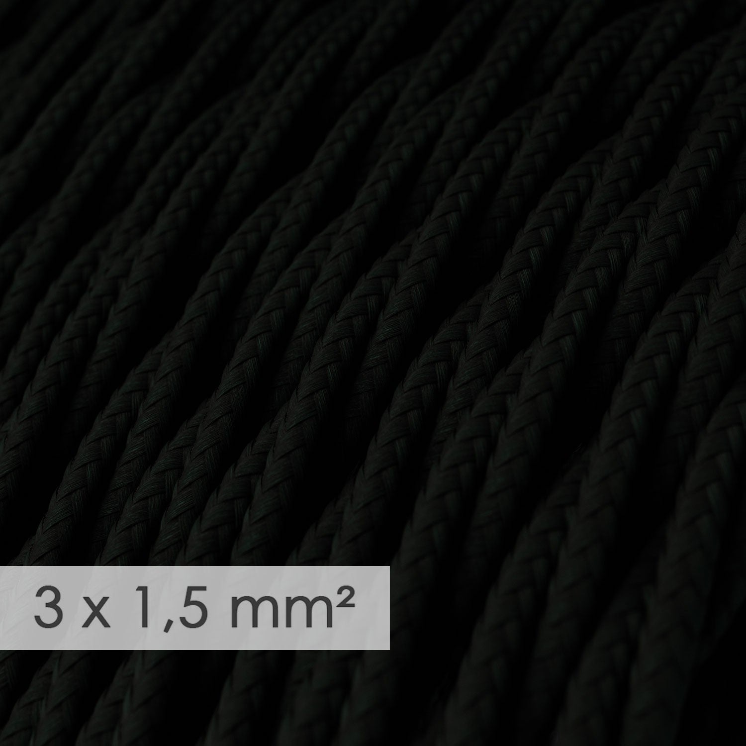 Large section electric cable 3x1,50 twisted - covered by rayon Black TM04