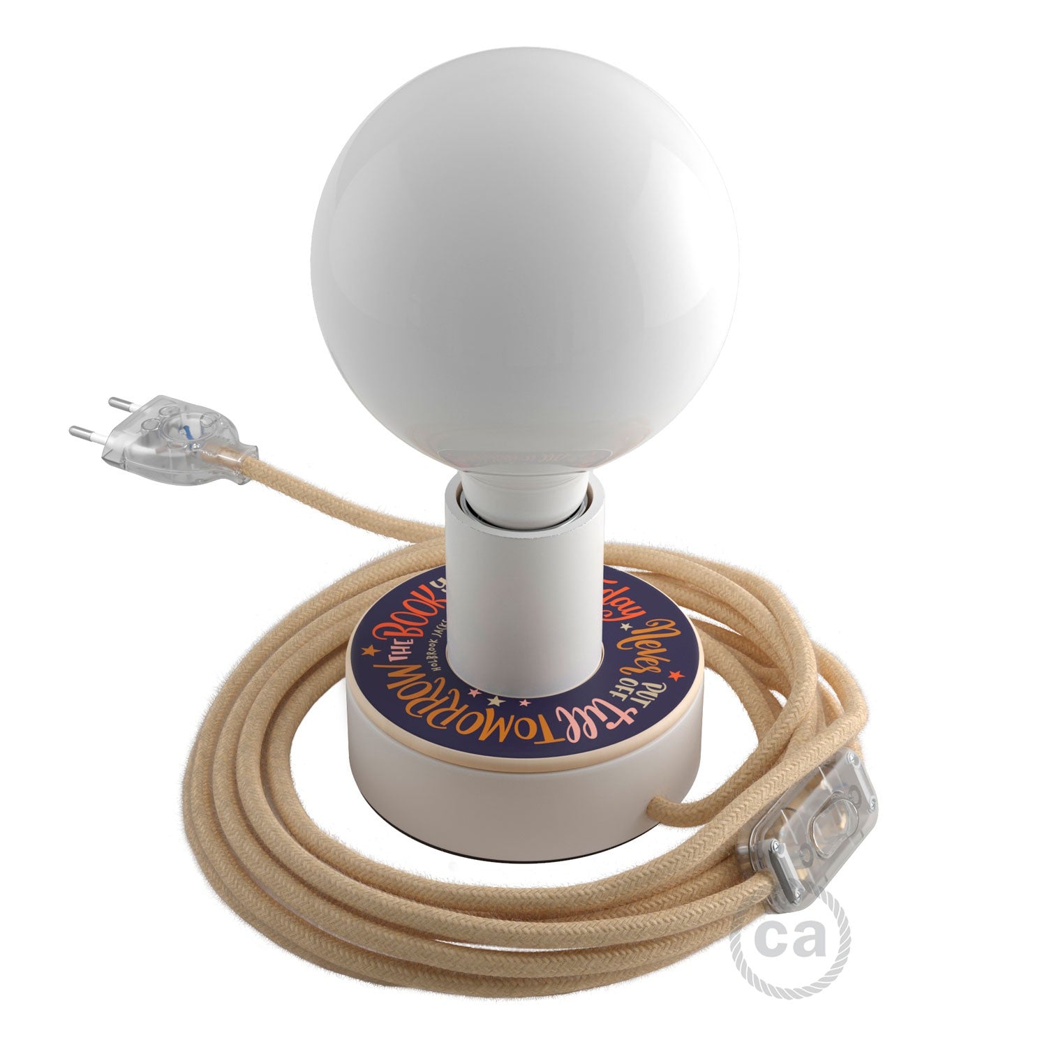 Posaluce in wood personalised with MINI-UFO, ready-to-use table lamp