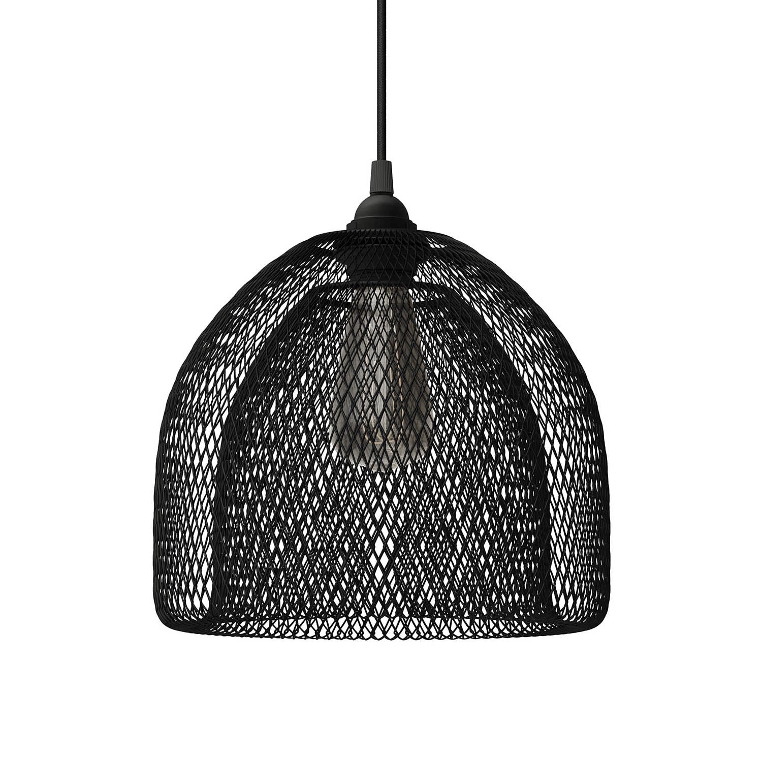 Pendant lamp with textile cable, Ghostbell XL cage lampshade and metal details - Made in Italy - Bulb included