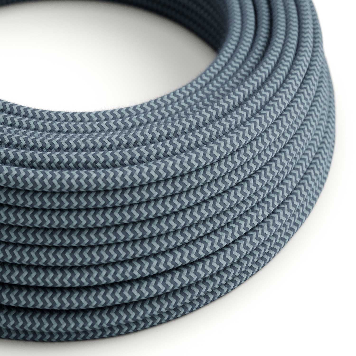 Round Electric Cable covered in Cotton - ZigZag Stone Grey and Ocean RZ25.