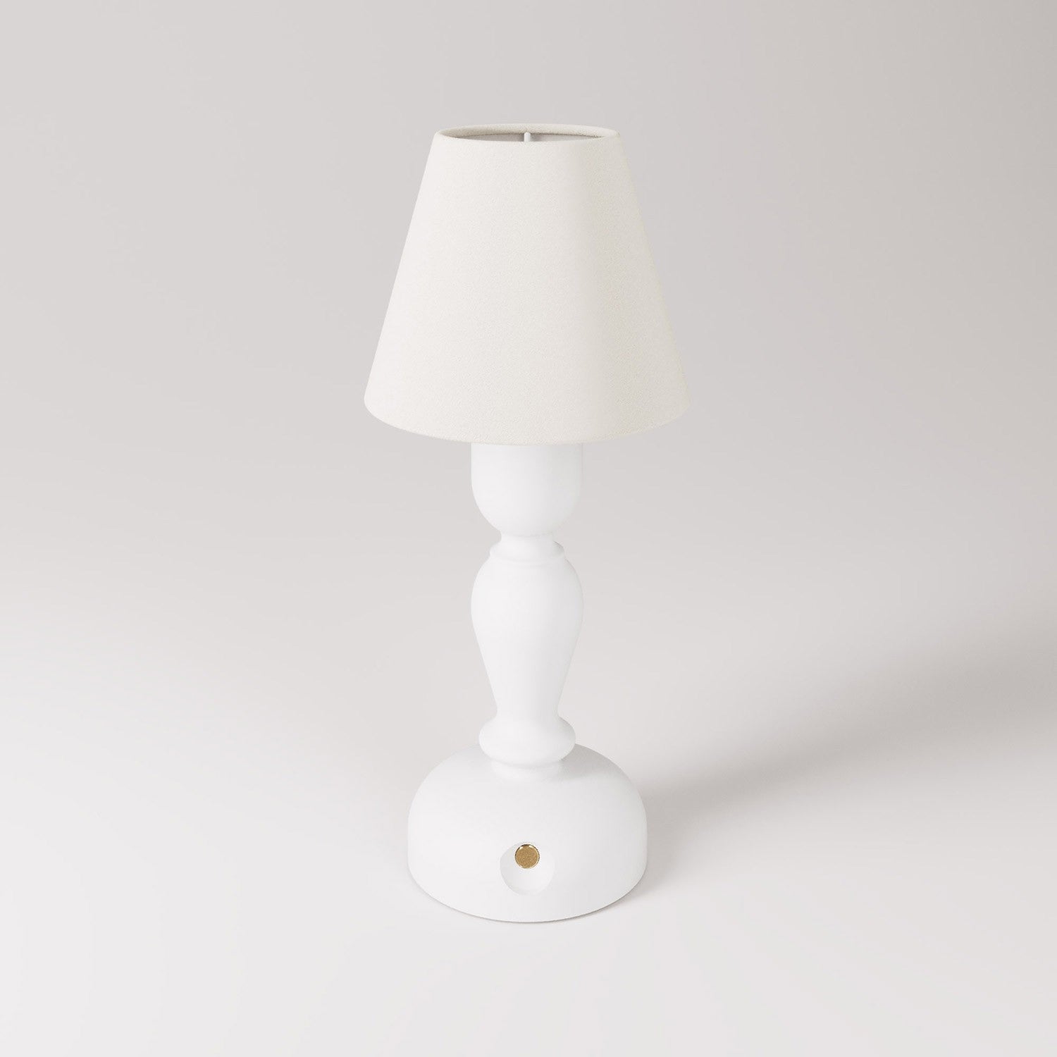 Portable and rechargeable Cabless14 Lamp with droplet bulb and lampshade