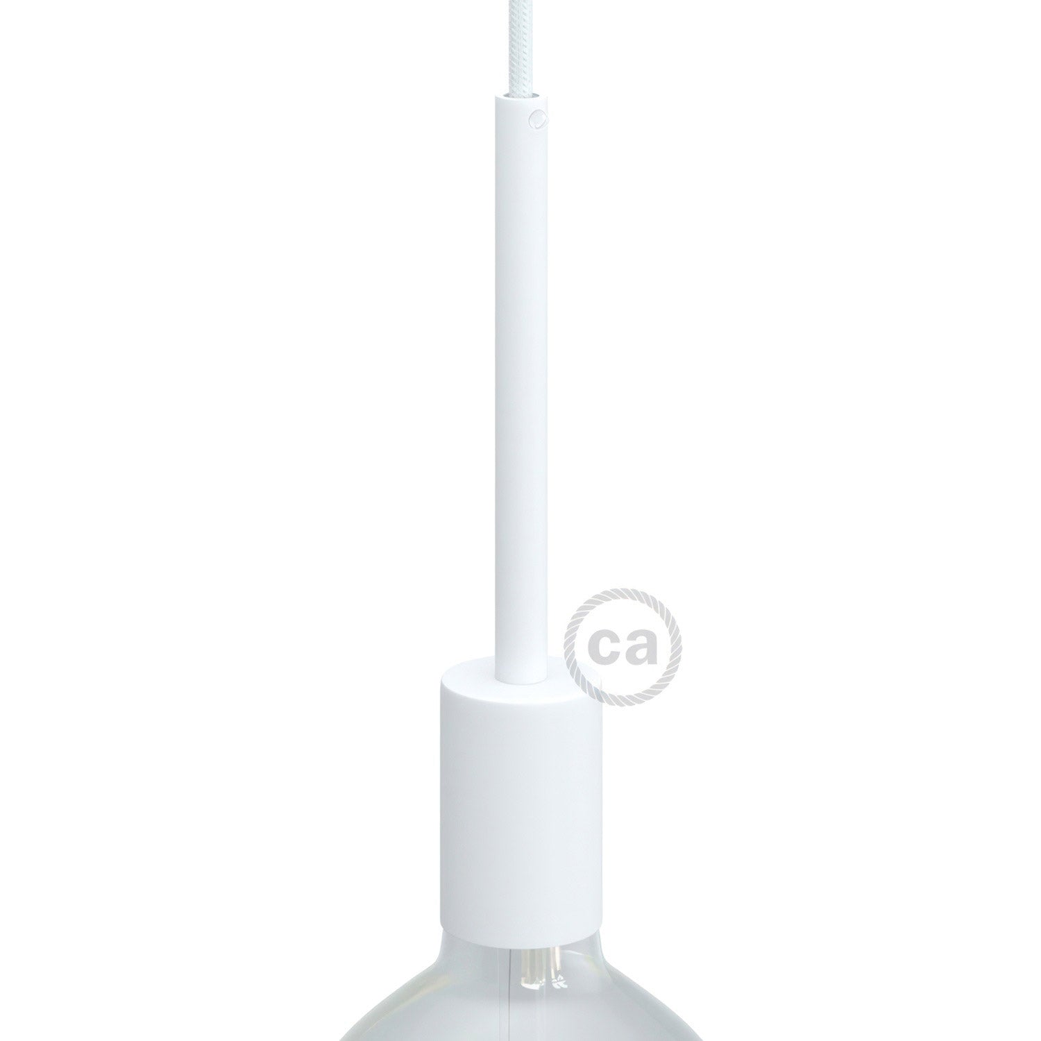 Cylinder lamp holder kit consisting of an E27 lamp holder with a 15 cm cylindrical metal cable clamp for use with your preferred textile cable and the ceiling rose.