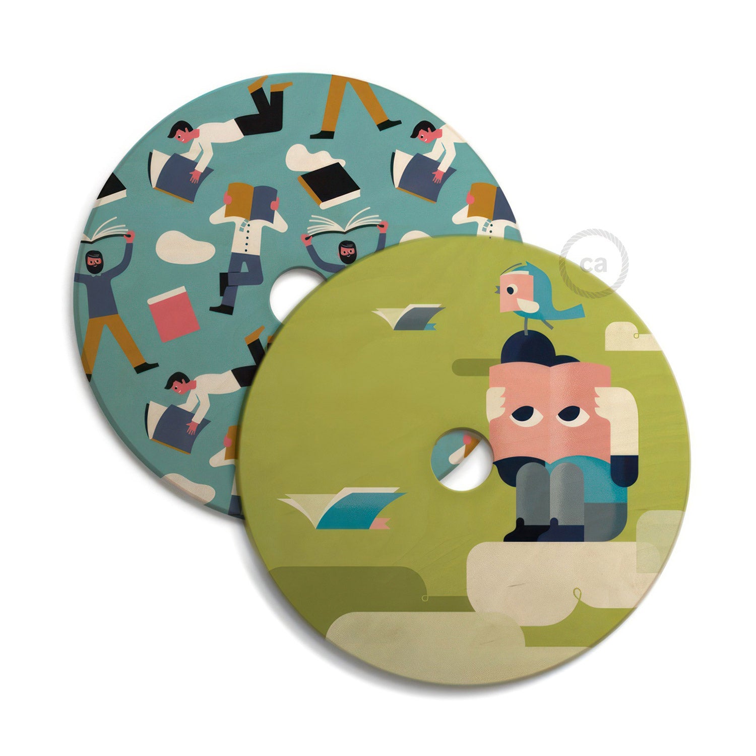 UFO Wooden lampshade Special Edition Italian Illustrators, double face - 33 cm diameter
