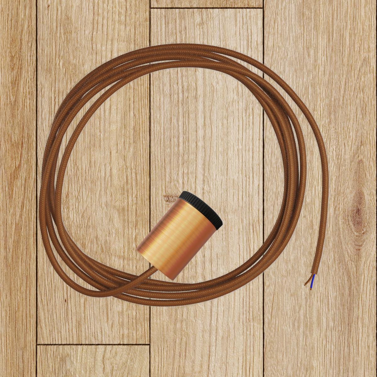 Cavo tessile : 2.14mt. [XZ2RC23] Cavo tessile per illuminazione in cotone Marrone Cannella - L'Originale Creative Cables, per le tue lampade moderne - RC23 - N° of cores: 2x0.75