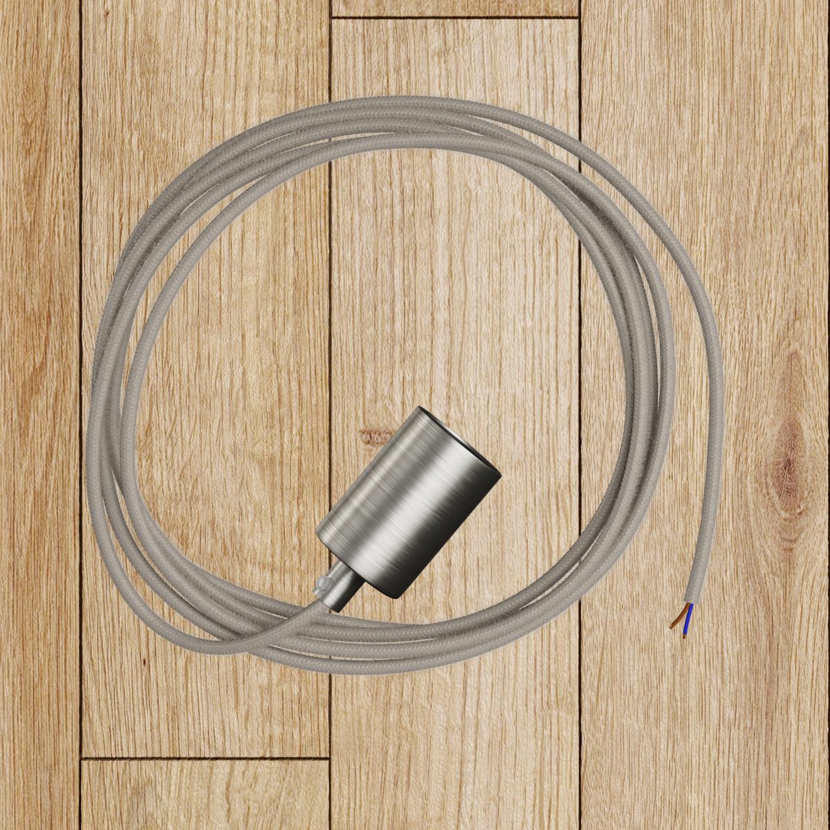 Portalampada : 1X [KBM4011TISTERM] Kit portalampada E27 cilindrico in metallo - Cable clamp: Cylindrical, Finish: Brushed titanium