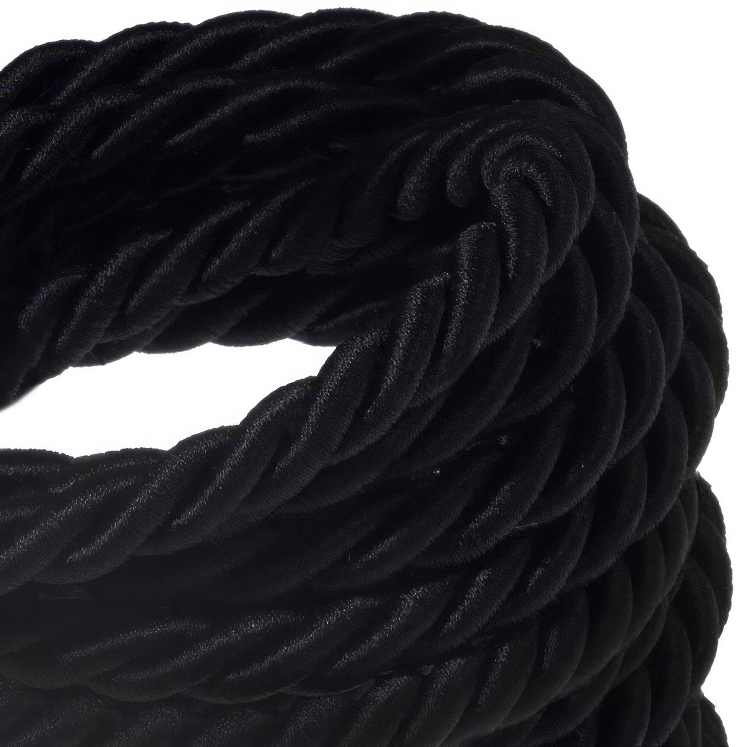 XL electrical cord, electrical cable 3x0,75. Shiny black fabric covering. Diameter 16mm.