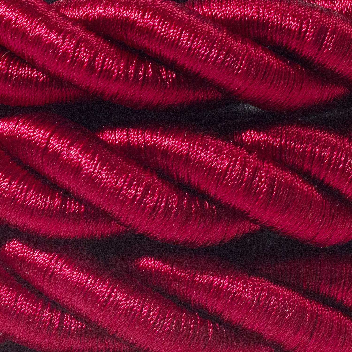 2XL electrical cord, electrical cable 3x0,75. Shiny dark bordeaux fabric covering. Diameter 24mm.