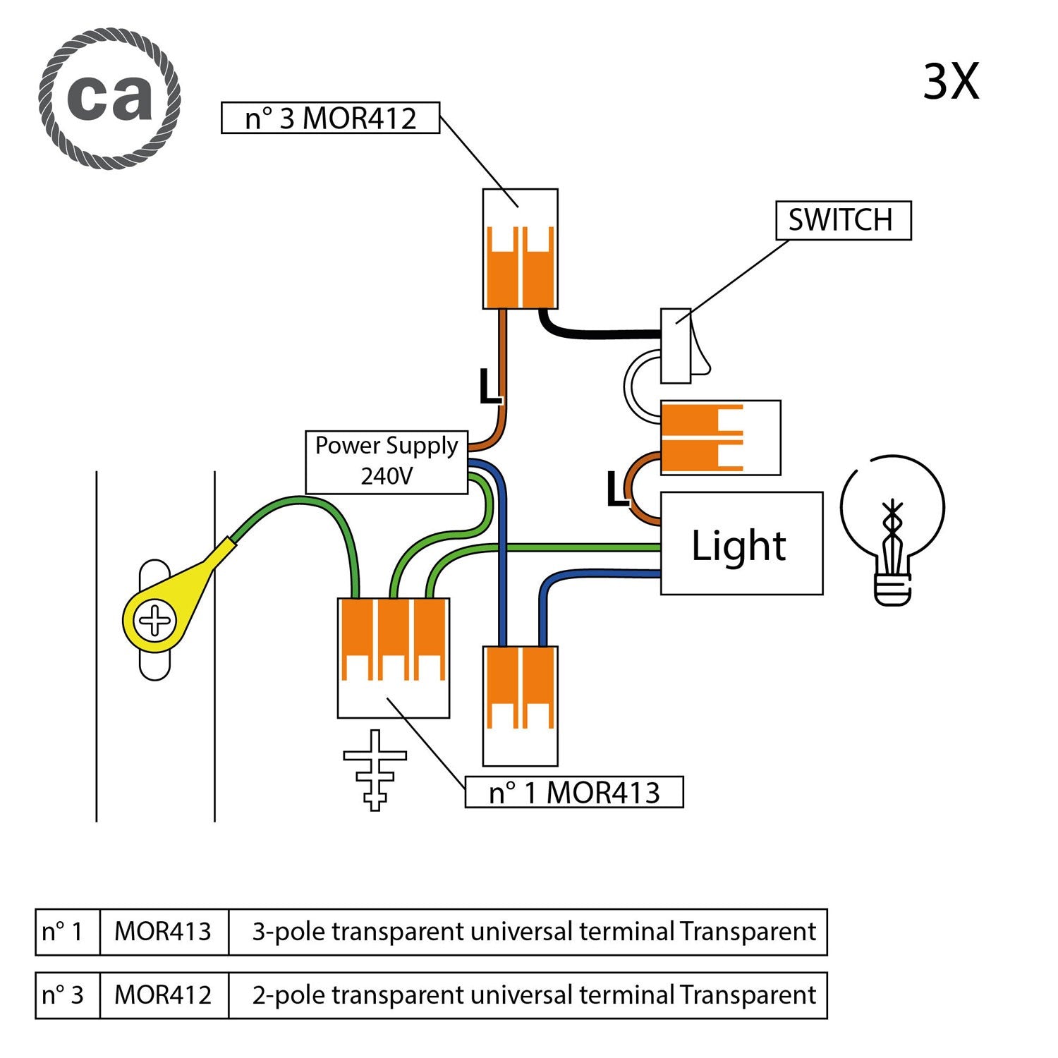 WAGO connector kit compatible with 3x cable for 1 hole mini ceiling rose with switch
