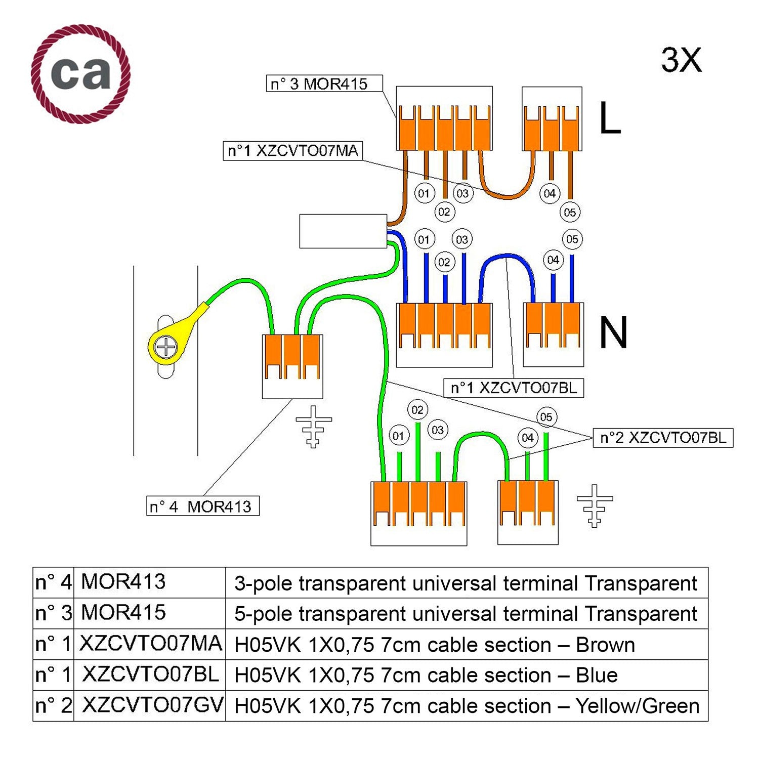 WAGO connector kit compatible with 3x cable for 5 hole ceiling rose