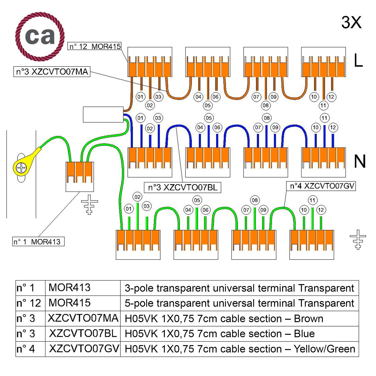 WAGO connector kit compatible with 3x cable for 12 hole ceiling rose