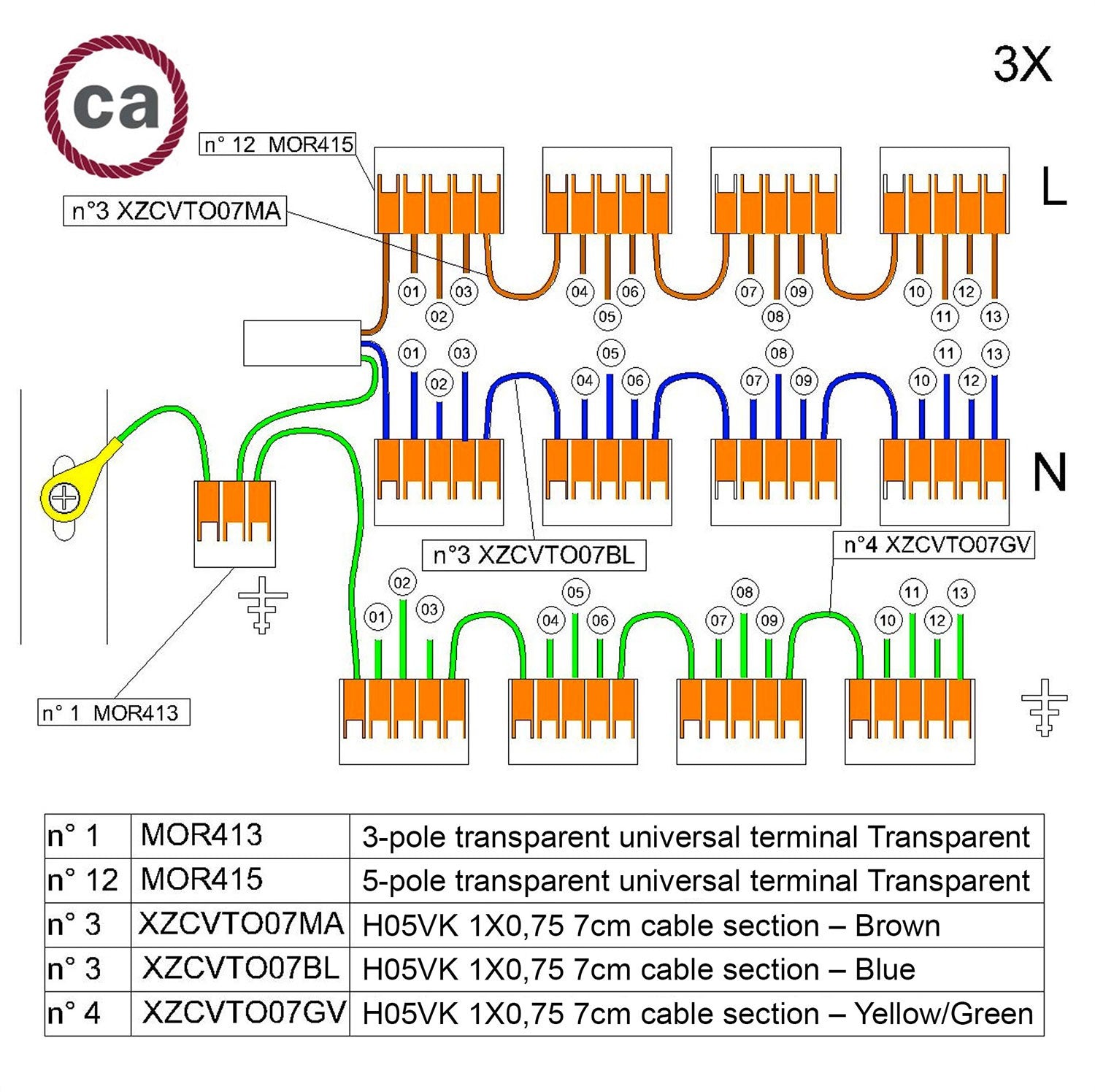 WAGO connector kit compatible with 3x cable for 13 hole ceiling rose