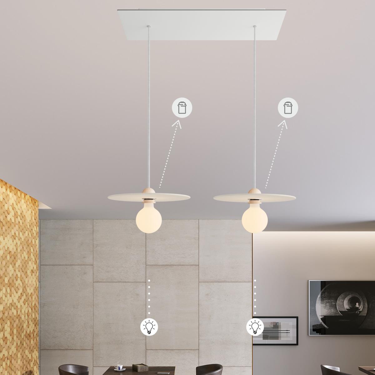 Plafondkap : 1X [KROVBORE2F102] XXL rechthoekige 2-gats Rose-One plafondkap-kit, afmetingen 675 x 225 mm - Decoration: Matt White Dibond, Ceiling Rose Colour: Wit