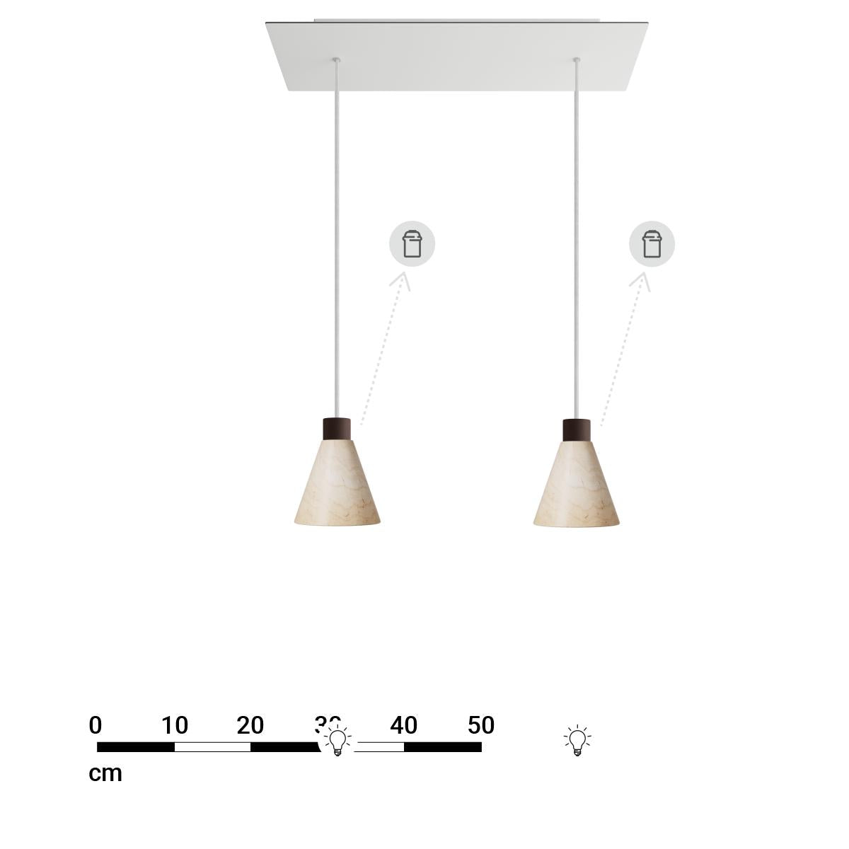 Plafondkap : 1X [KROVBORE2F102] XXL rechthoekige 2-gats Rose-One plafondkap-kit, afmetingen 675 x 225 mm - Decoration: Matt White Dibond, Ceiling Rose Colour: Wit