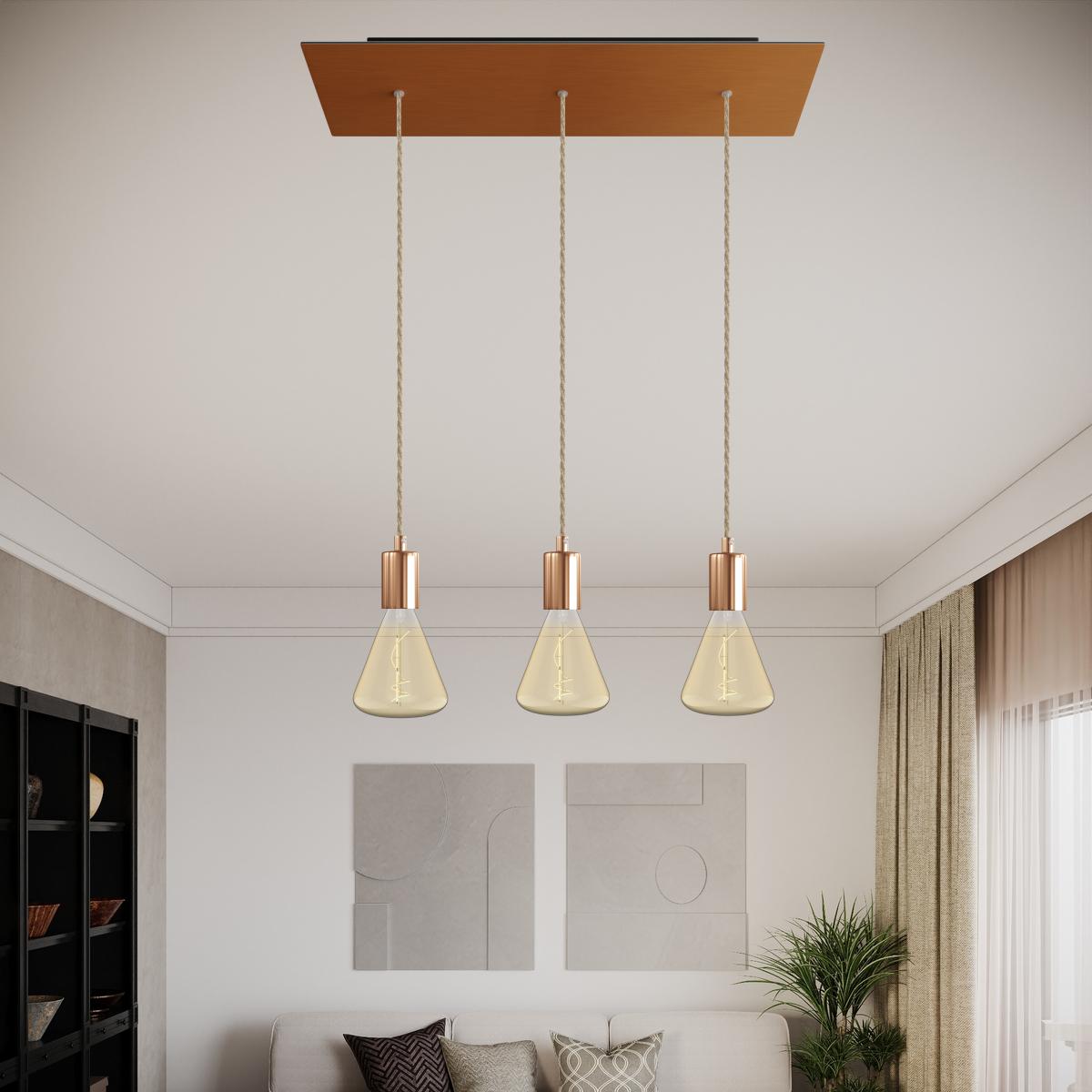 Portalampada - caduta 3 : 1X [KBM4011RATERM] Kit portalampada E27 cilindrico in metallo - Cable clamp: Cylindrical, Finish: Copper