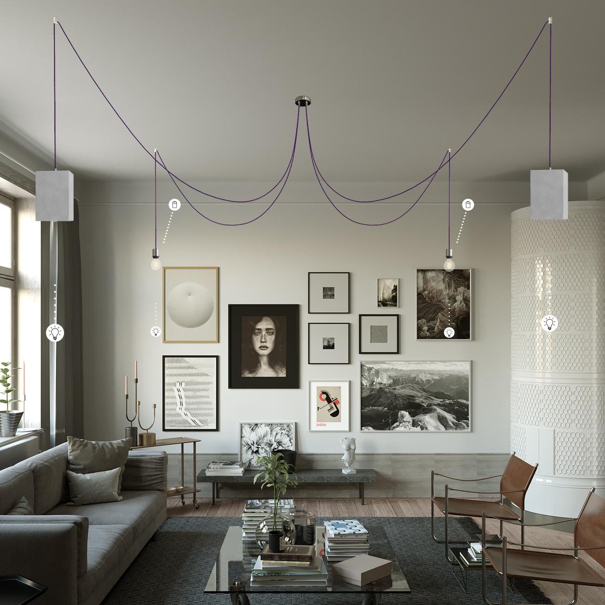 Lampenschirm: 2. Fall : 1X [KPAC03CGL] Lampenschirm Cube aus Zement mit Kabelklemme und E27-Fassung zum Aufhängen - Finish: Light cement